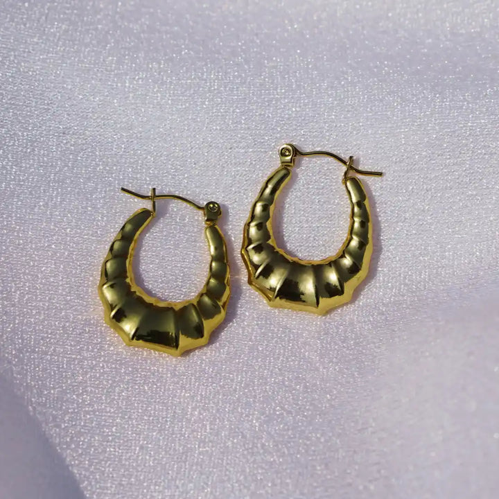 Pinched Gold Hoops - 18K Anti Tarnish Stainless steel