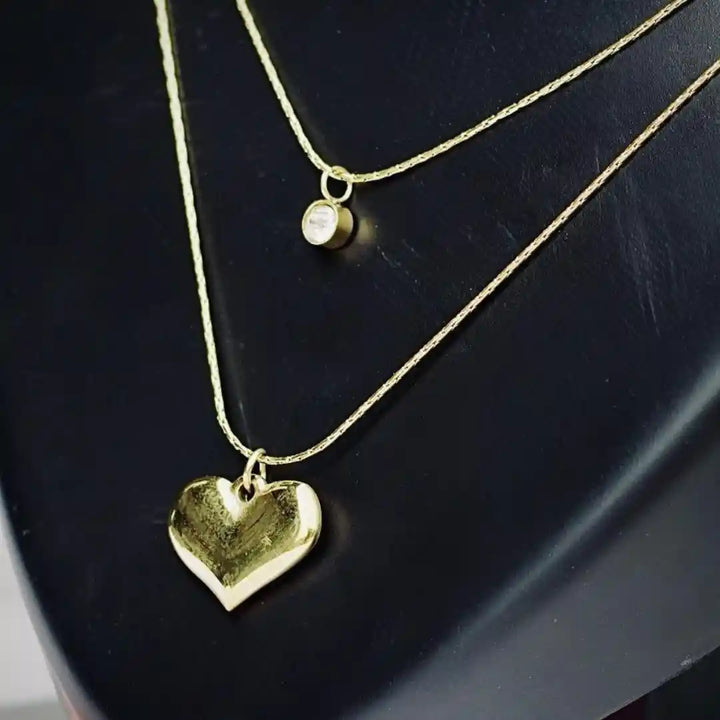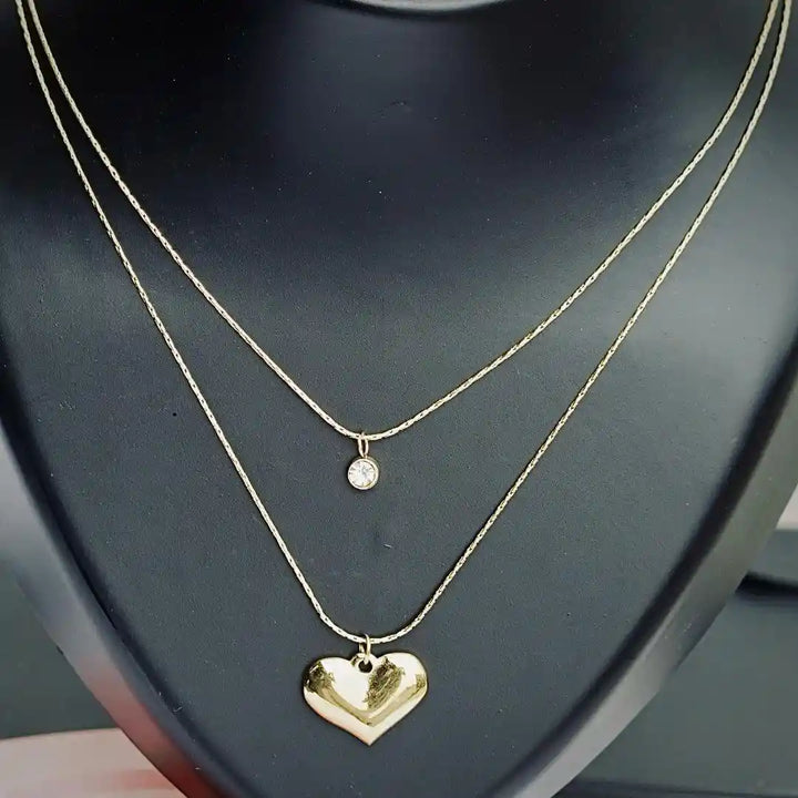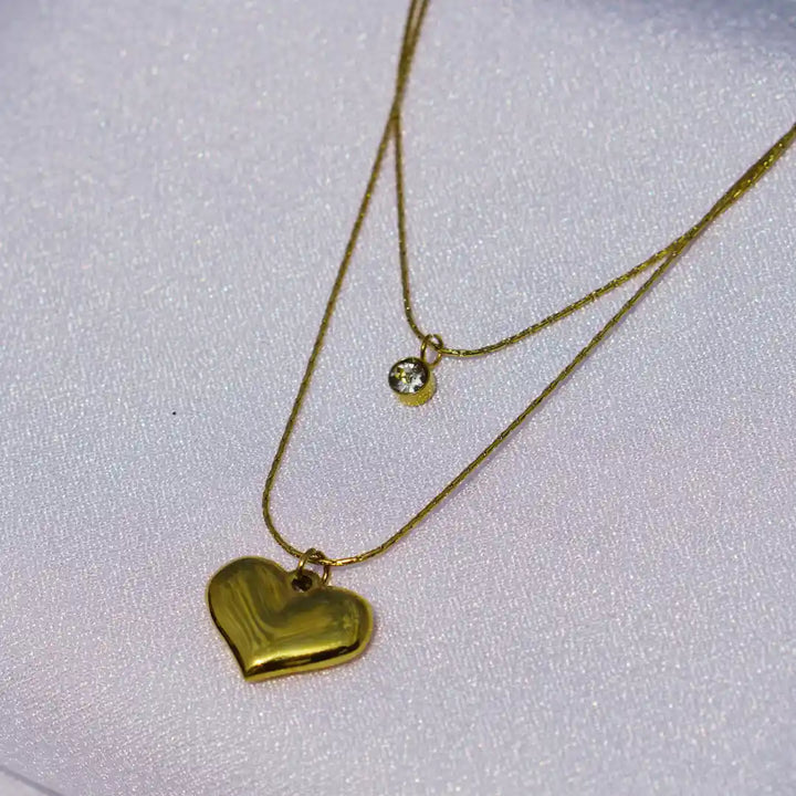 18KT Gold Plated Anti Tarnish Stainless Steel Double Layer Love Pendant Necklace