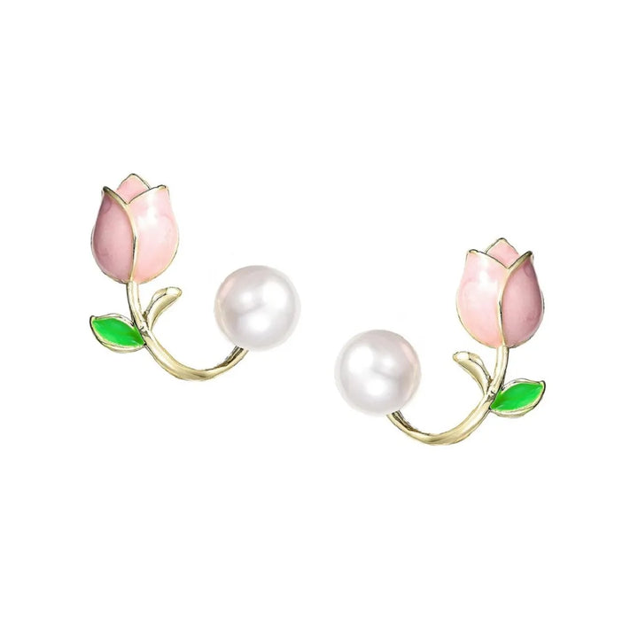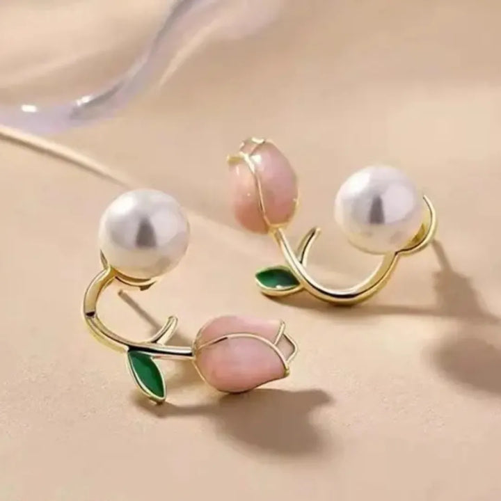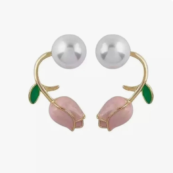 Combo of 2 - Trendy Butterfly Stud Earrings / Pink Tulip Flower Stud Earrings