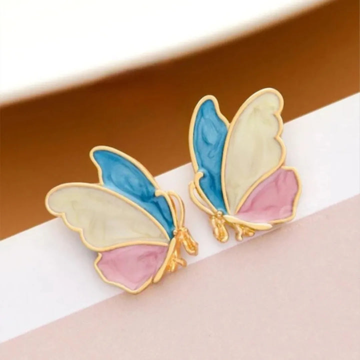 Crafted from durable alloy and finished with a sleek gold plating, these earrings feature a delicate butterfly shape that brings a trendy and feminine vibe to any outfit. With a secure post-back closure, they’re comfortable for all-day wear.