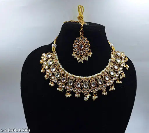 Whether you're dressing up for a wedding, festive event, or a special celebration, this jewelry set promises to elevate your ethnic look with a royal touch. Lightweight and adjustable, it’s perfect for both women and girls looking to shine with elegance.