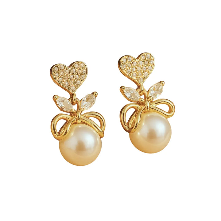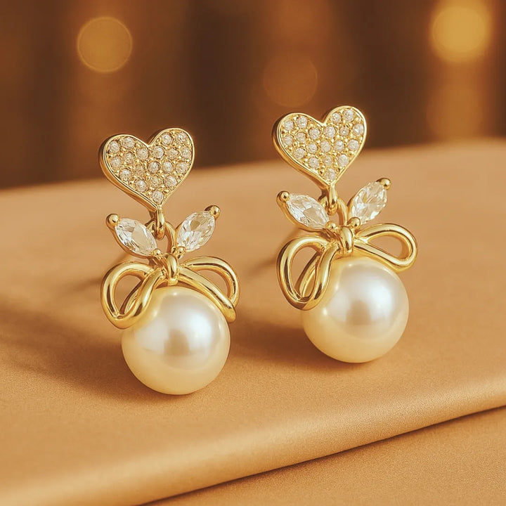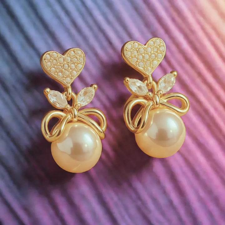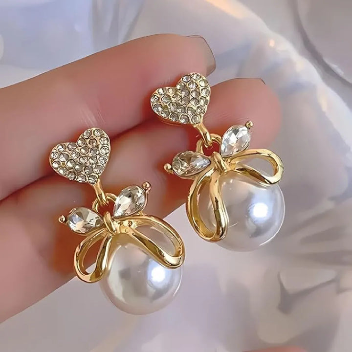 Gold Plated Korean Pearl Drop Earrings – Elegant Dangle Jewelry for Women