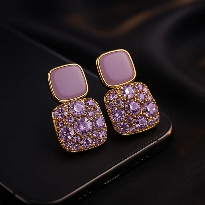 Women’s Square Drop Earrings with Purple Crystal – Elegant Alloy Studs